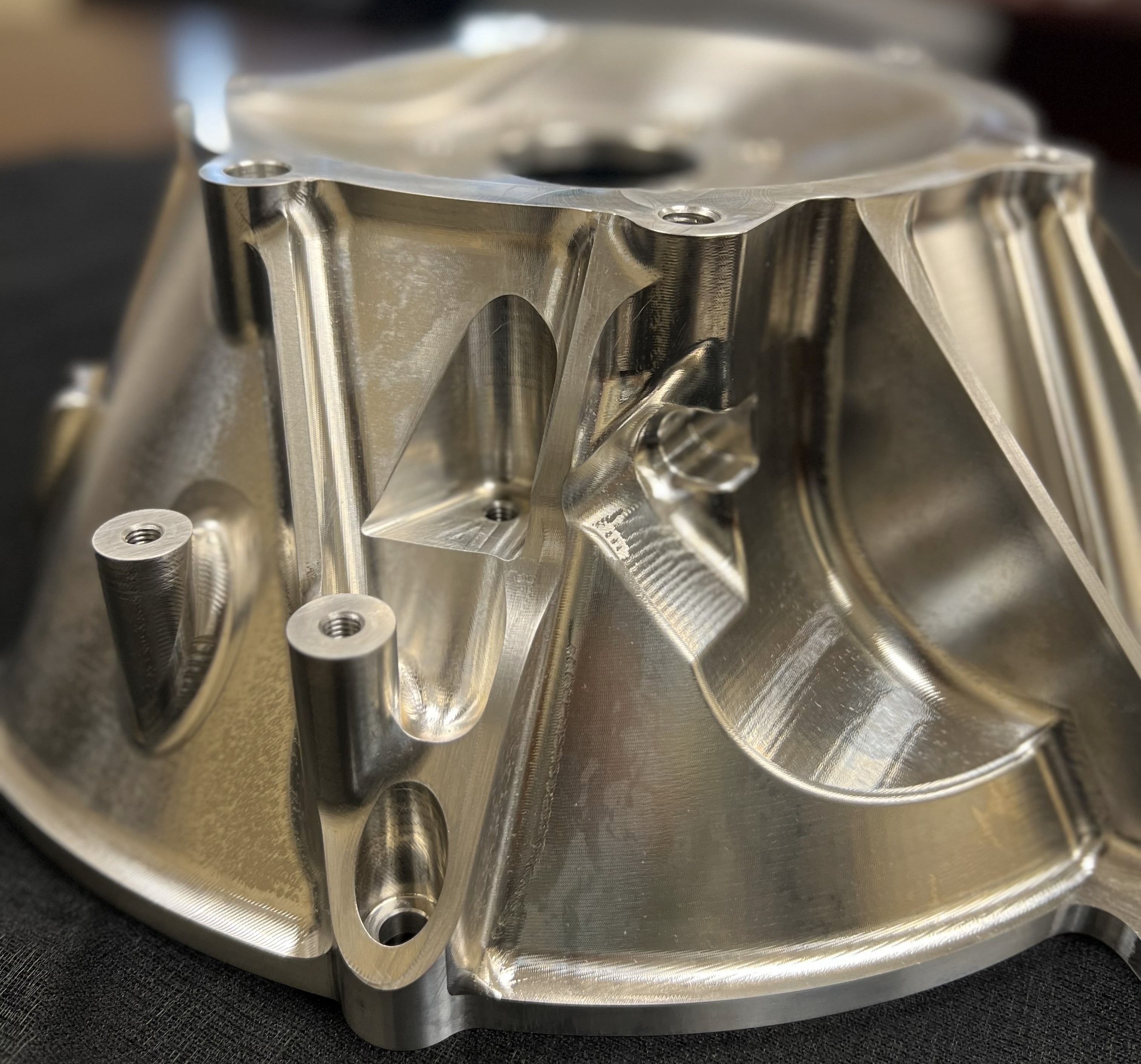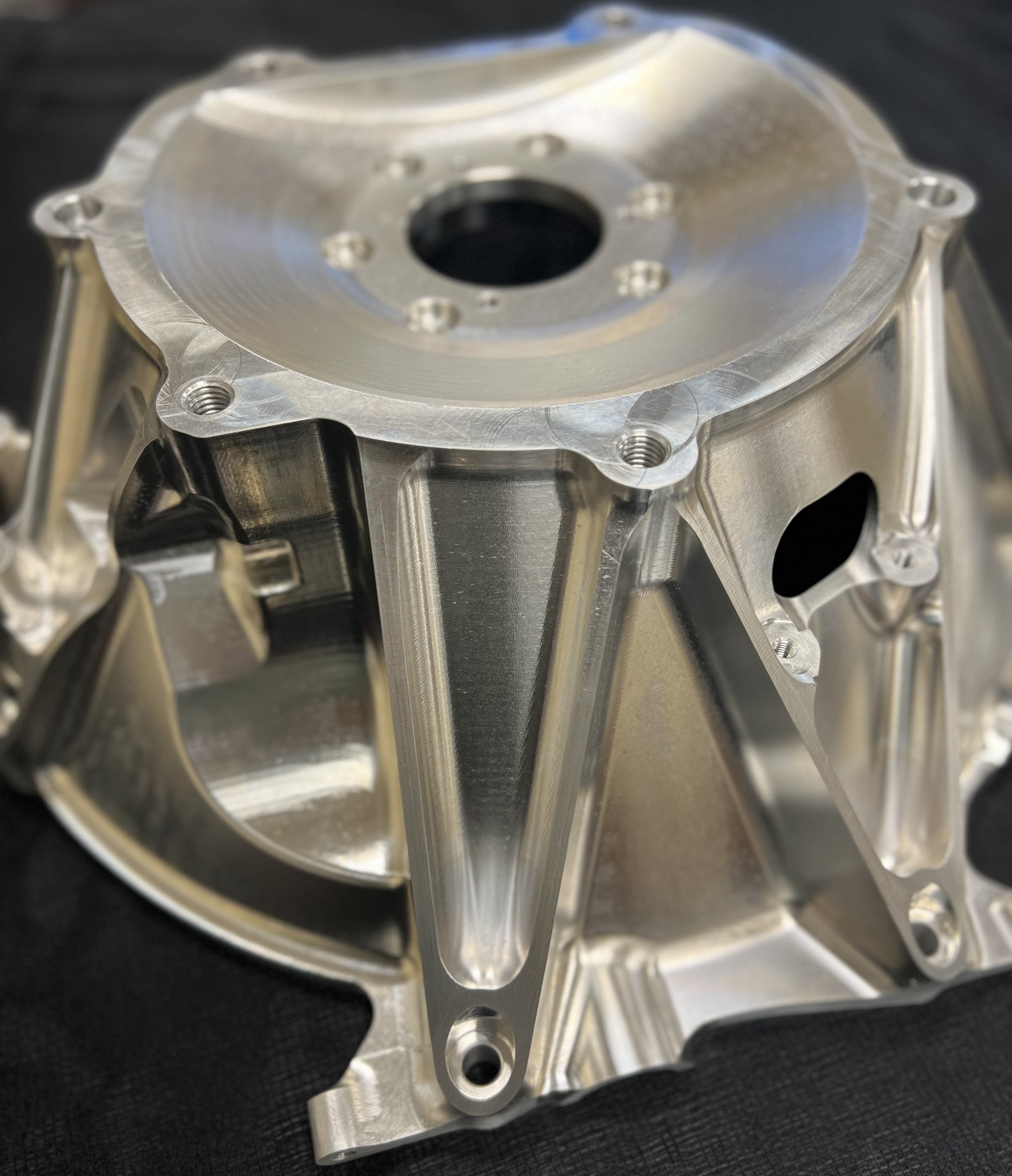 Precision CNC machined aluminum bell housing, produced to tight tolerances and finished for performance-critical applications. Quality built into every detail.